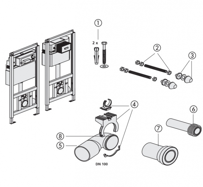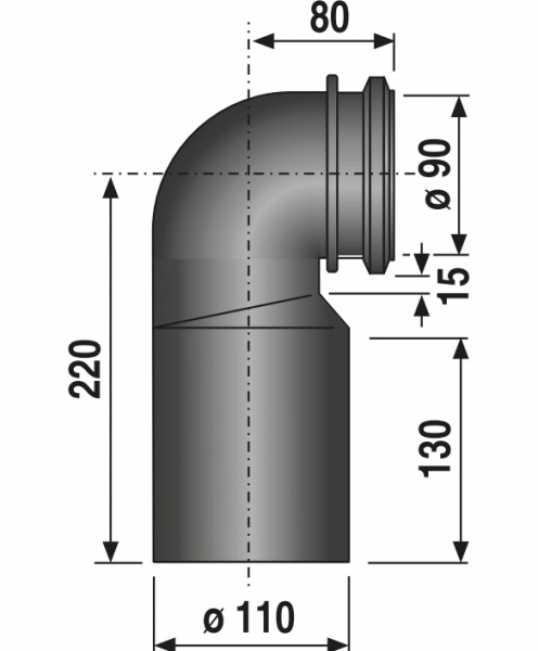 Отвод для унитаза 90º, DN90/DN100 к монтажным элементам Sanit для унитаза для сухого способа облицовки