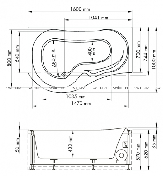 - Панель фронтальная Pharo 22702100 для гидромассажной ванны Whirlpool 200 Comfort 22702000 правостороннего монтажа