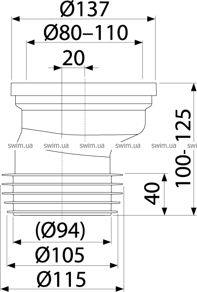Патрубок для унитаза эксцентрический 20 мм