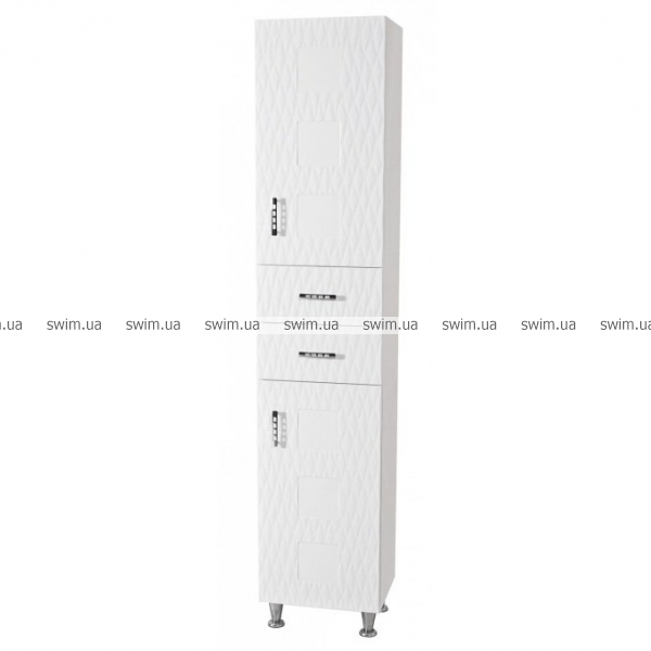 Отличное решение для ванной комнаты. Позволит упорядочить ванные принадлежности и функционально использовать пространство. 3D фасад придаёт мебели для ванной уникальную огранку. Качественные материалы и комплектующие обеспечат вам комфорт в пользовании мебелью.