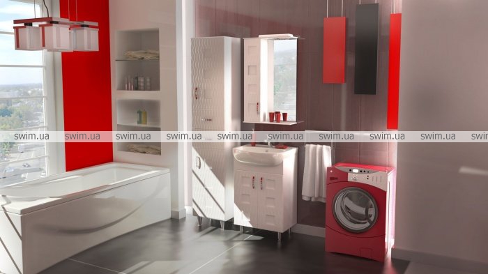 Мебель выглядит стильно и современно. Взгляд притягивает 3D фасад, который придаст уникальности любой ванной.