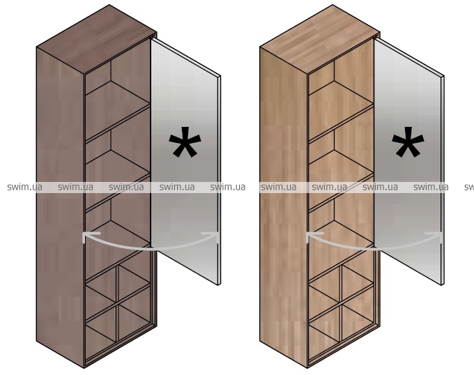 - Цвет двери: дерево венге, дерево орех, белый глянец, зеркальное