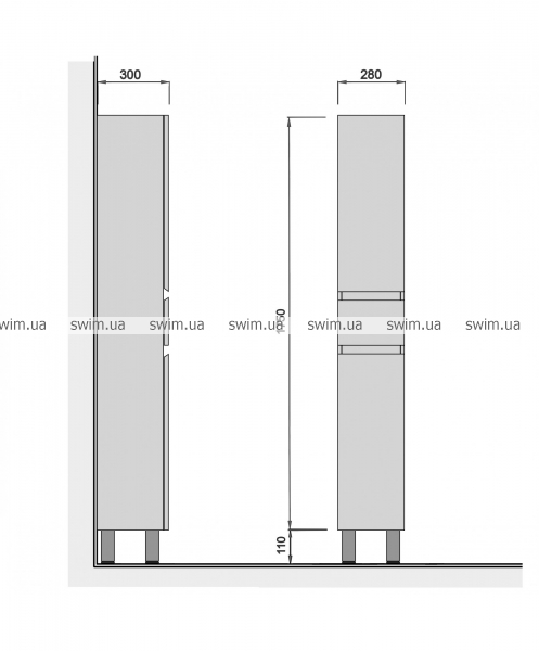 Пенал підлоговий Мойдодир Focus P-28 білий глянсовий