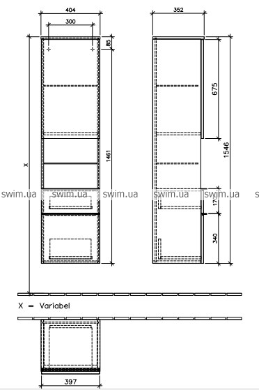 - дверца с петлями справа