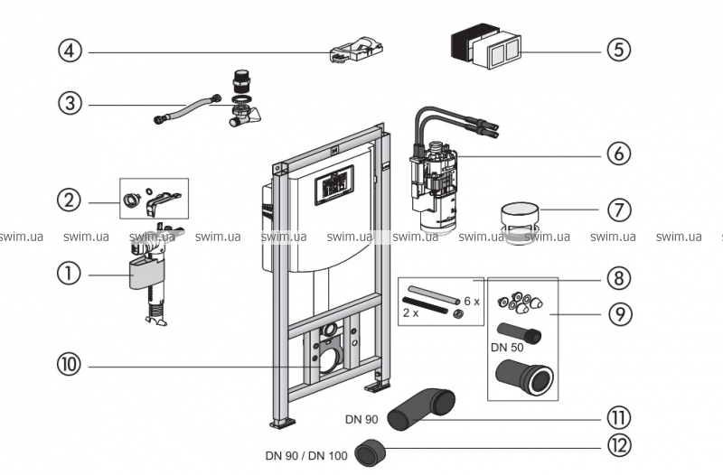 Переходная муфта DN 90/DN 100 к смывным бачкам Ineo Plus, CC-121-S-FO-2V-2C, с малым ревизионным отверстием
