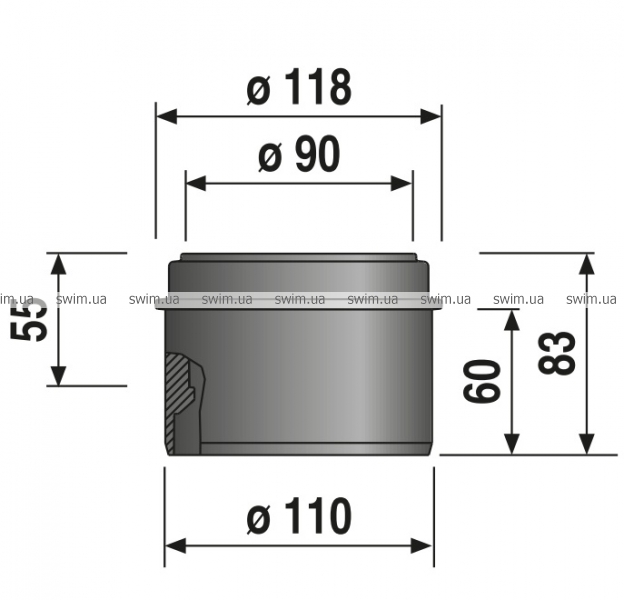 Переходная муфта Sanit DN 90/DN 100 58.211.00..0000