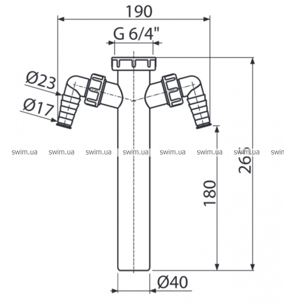 - Резьба для подключения к сифону: 6/4"