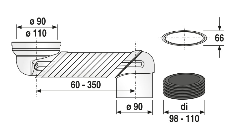 - В комплекте с монтажным уплотнением для подключения унитазов DN 90 и DN 100