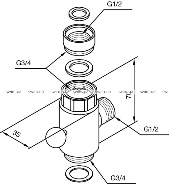 - Разъем G 1/2" и G 3/4"