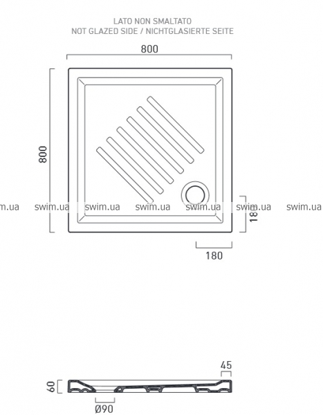 - Квадратний душовий піддон 80х80