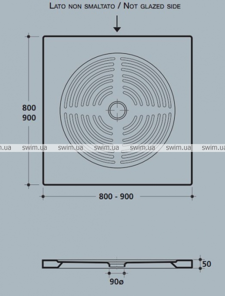Душовий піддон 90x90 в рівень із підлогою Kerasan Disabili 1369 - квадратний керамічний піддон з антиковзним покриттям білого кольору. Призначений для квадратних душових куточків 90х90 см.