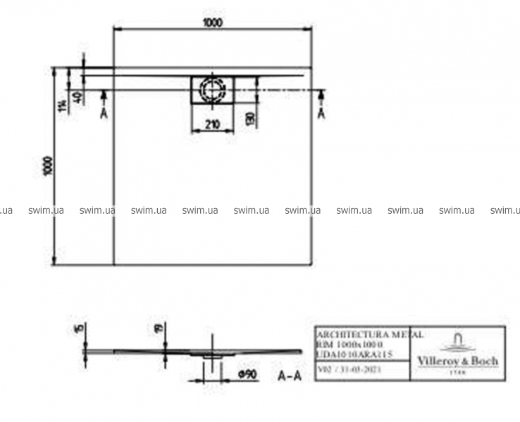 ГоловнаДушові піддониVilleroy&Boch → Піддон душовий Villeroy&Boch Architectura UDA1010ARA115 100х100 см