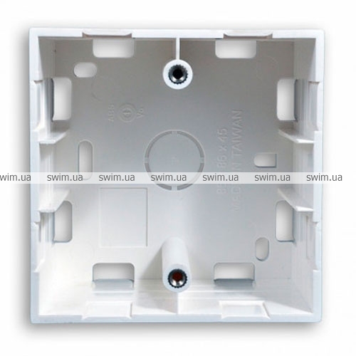 У монтажній коробці передбачені дві металеві різі під винти діаметром 3,5 мм. З допомогою яких надійно фіксується лицева панель з розетками.