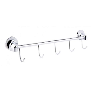 Держатель для полотенец и халатов Lidz (CRM) 115.08.05 выполнен в виде стержня с пятью фиксированными крючками. Он крепится на стену на удобной высоте с помощью монтажных элементов, которые входят в комплект. Поверхность хромирована, поэтому менее подвержена коррозии и грязи. Во время уборки достаточно протереть с помощью мыльного раствора и мягкой салфетки.