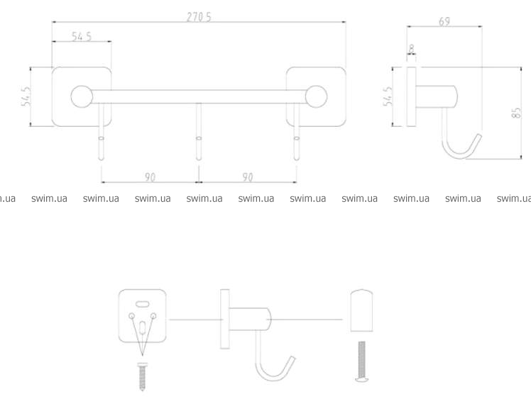 Крючок Lidz (CRM) 116.08.03 выполнен в виде стержня с тремя фиксированными крючками. Он крепится на стену на удобной высоте с помощью монтажных элементов, которые входят в комплект. Поверхность хромирована, поэтому менее подвержена коррозии и грязи. Во время уборки достаточно протереть с помощью мыльного раствора и мягкой салфетки.