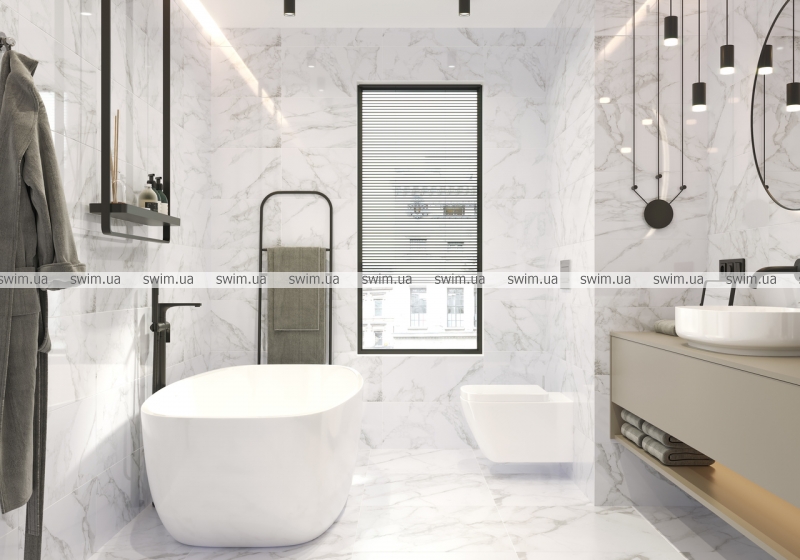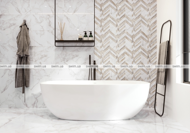 Плитка Marmo Bianco – це класична керамічна плитка з вишуканим малюнком. Такий тип покриття вже не перший десяток років використовується для облицювання стін у ванних кімнатах. Воно відрізняється дрібнопористою структурою, що робить його: