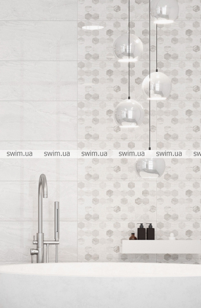 Настінна плитка Marmo Milano світло-сіра відрізняється нейтральним відтінком, її можна використовувати в інтер'єрі як саму по собі, так і в поєднанні з іншими облицювальними матеріалами. У колекції Marmo Milano український виробник Golden Tile пропонує унікальне поєднання класичного мармуру з цікавим ультрасучасним геометричним візерунком, але кожен користувач має можливість для різноманітних експериментів з інтер'єром.