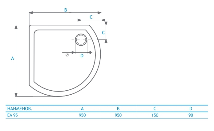 Поддон с индивидуальным размером 950х950 подходит только для кабины NA 95. Идет в комплекте с сифоном.