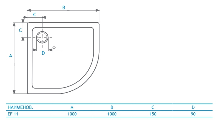 Поддон душевой Koller Pool EF11 полукруглый 100x100 см