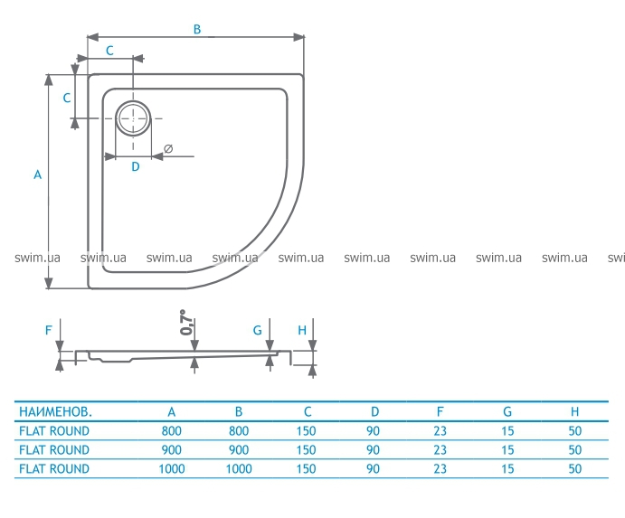 Flat Round полукруглый душевой поддон. Его форма с уклоном к сливу в 0,7 градусов позволяет оставлять поддон сухим.