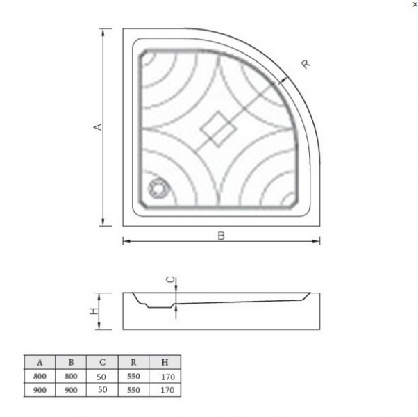 - Размер: 900х900х170 мм