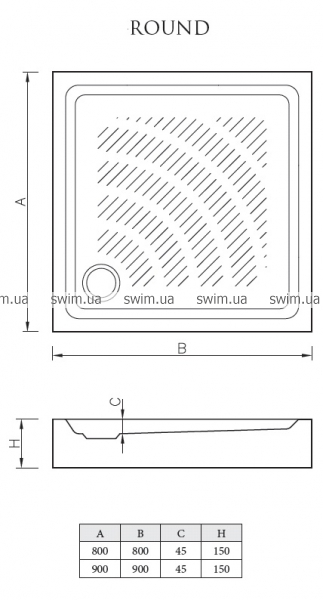 → Поддон душевой Koller Pool Round 98 892 квадратный 90х90 см