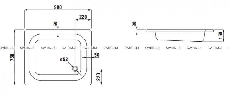 → Поддон душевой Laufen Platina 2.1502.3.xxx.040.1 прямоугольный 90х75 см