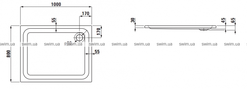 Поддон душевой Laufen Solutions 2.1150.8.000.000.1 прямоугольный 100х80 см