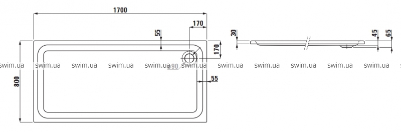 Поддон душевой Laufen Solutions 2.1550.7.000.000.1 прямоугольный 170х80 см
