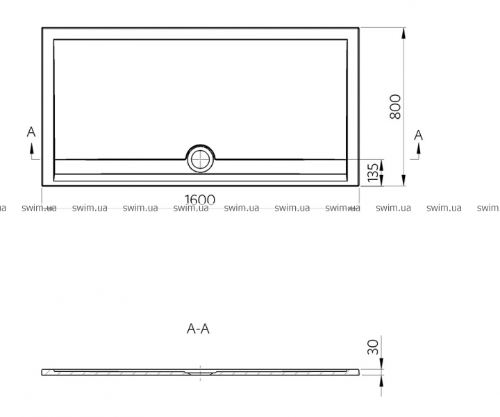 - Рамер: 1600х800х30 мм