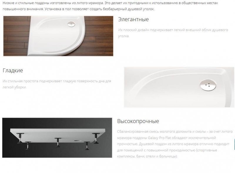 Очень прочные поддоны из литого мрамора с экстра-плоским современным дизайном.