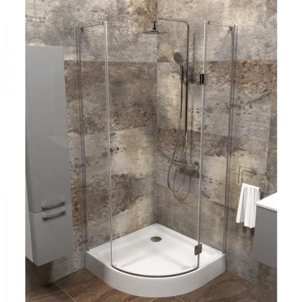 - Поддон подходит к любой полукруглой душевой кабине 900 мм