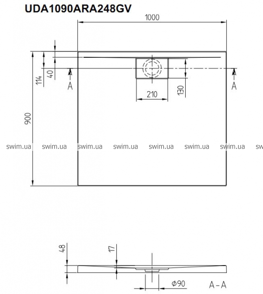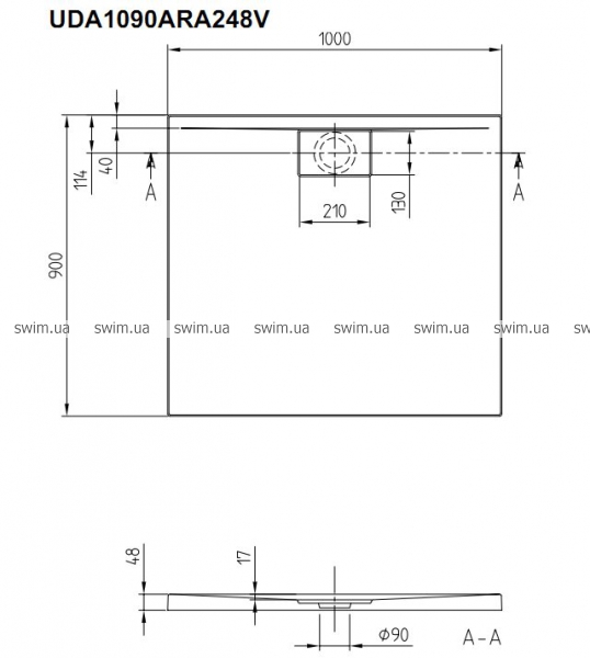 Поддон душевой Villeroy&Boch Architectura MetalRim UDA1090ARA248-01 100х90 см