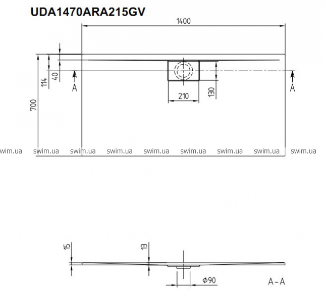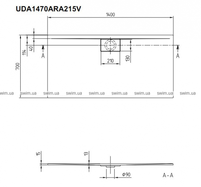 Поддон душевой Villeroy&Boch Architectura MetalRim UDA1470ARA215-01 140х70 см