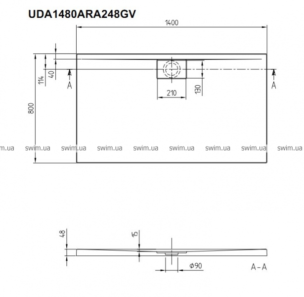 Поддон душевой Villeroy&Boch Architectura MetalRim UDA1480ARA248-01 140х80 см