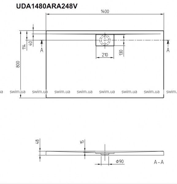 Поддон душевой Villeroy&Boch Architectura MetalRim UDA1480ARA248V-96 140х80 см