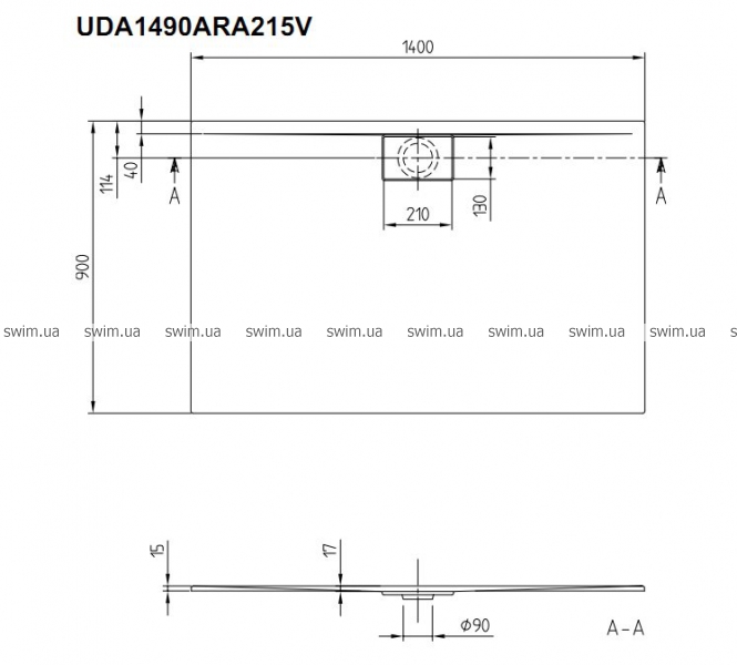 Поддон душевой Villeroy&Boch Architectura MetalRim UDA1490ARA215-01 140х90 см