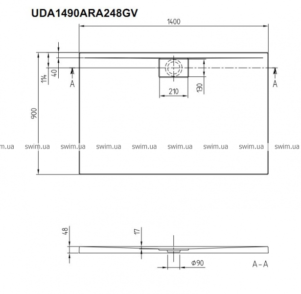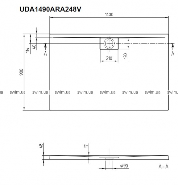 ГоловнаДушові піддониVilleroy&Boch → Поддон душевой Villeroy&Boch Architectura MetalRim UDA1490ARA248-01 140х90 см