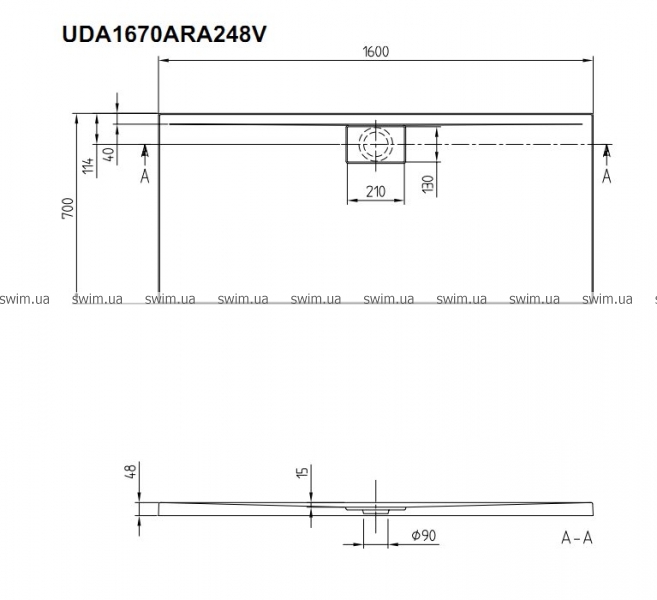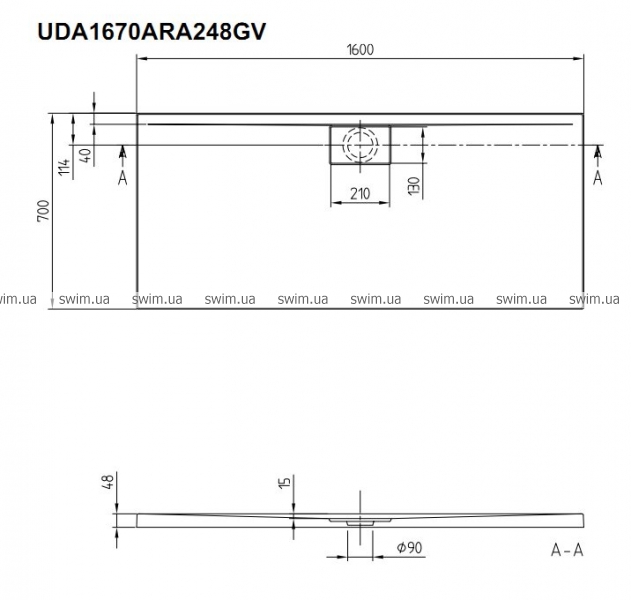 - Слив Ø: 90 мм