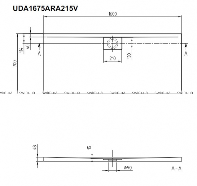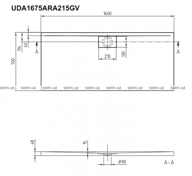 - Слив Ø: 90 мм
