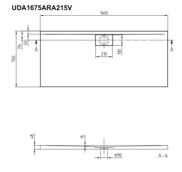 Поддон душевой Villeroy&Boch Architectura MetalRim UDA1675ARA215V-96 160х75 см