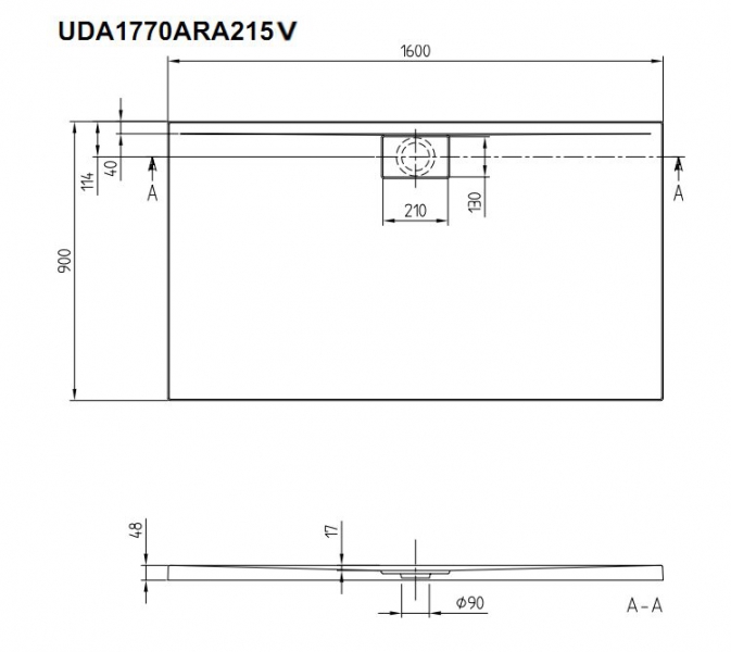 Поддон душевой Villeroy&Boch Architectura MetalRim UDA1770ARA215V-96 170х70 см