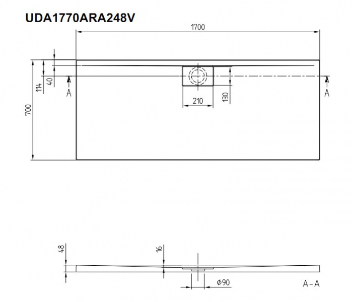 Поддон душевой Villeroy&Boch Architectura MetalRim UDA1770ARA248-01 170х70 см