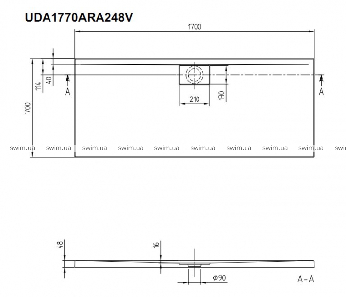 Поддон душевой Villeroy&Boch Architectura MetalRim UDA1770ARA248V-96 170х70 см