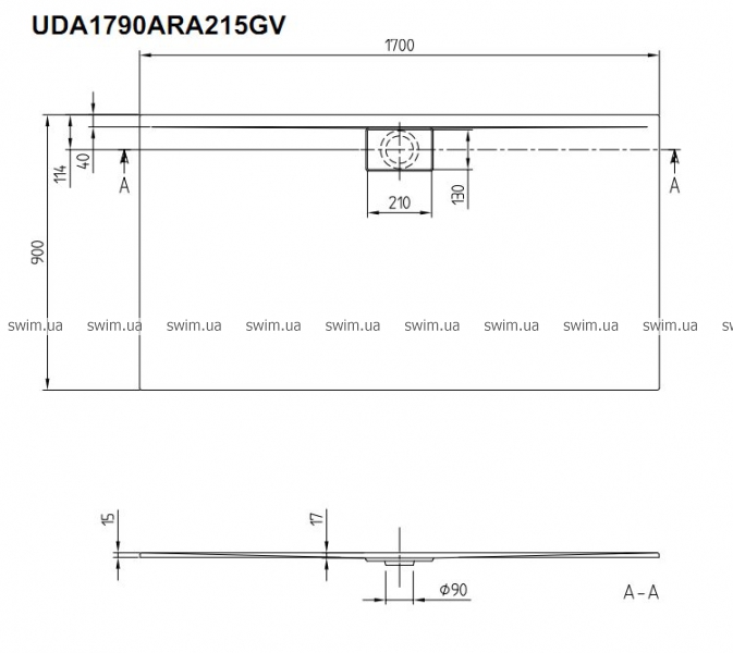 Поддон душевой Villeroy&Boch Architectura MetalRim UDA1790ARA215-01 170х90 см