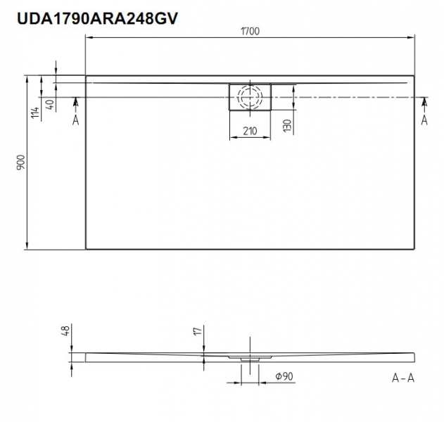 Поддон душевой Villeroy&Boch Architectura MetalRim UDA1790ARA248-01 170х90 см