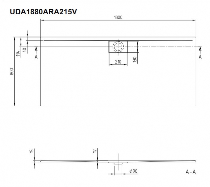 Поддон душевой Villeroy&Boch Architectura MetalRim UDA1880ARA215V-96 180х80 см