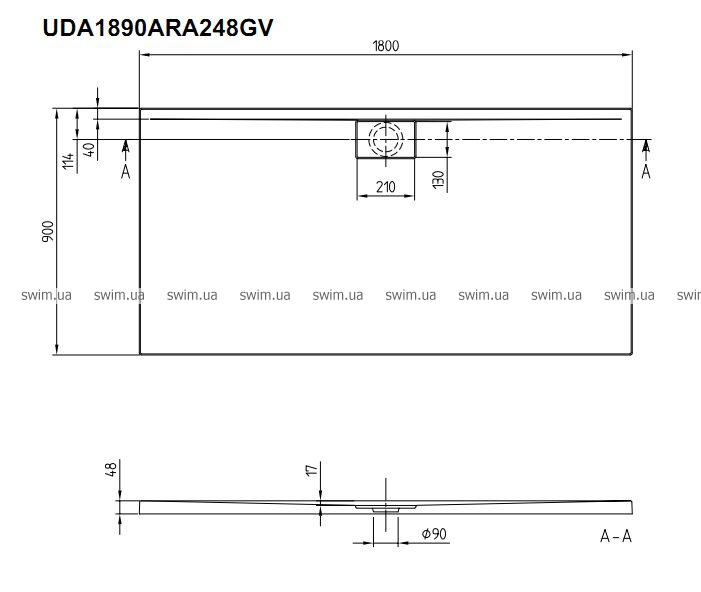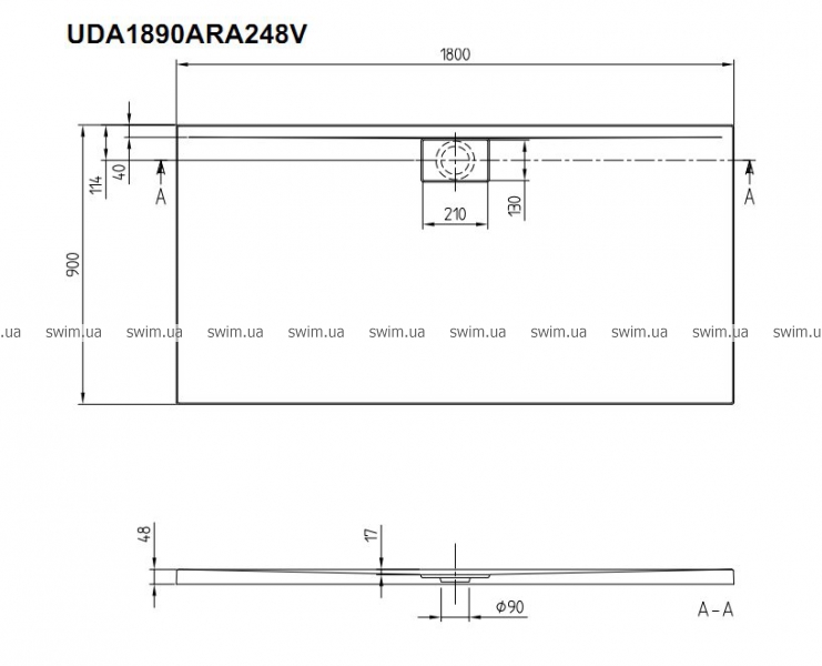 Поддон душевой Villeroy&Boch Architectura MetalRim UDA1890ARA248-01 180х90 см