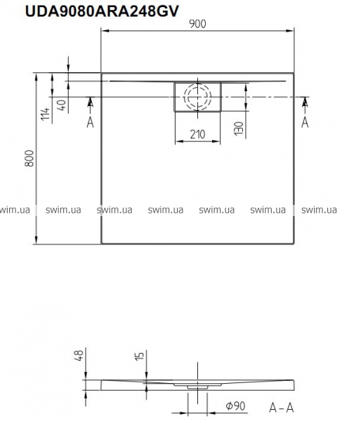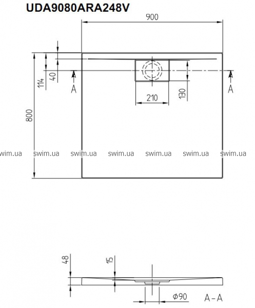 ГоловнаДушові піддониVilleroy&Boch → Поддон душевой Villeroy&Boch Architectura MetalRim UDA9080ARA248-01 90х80 см