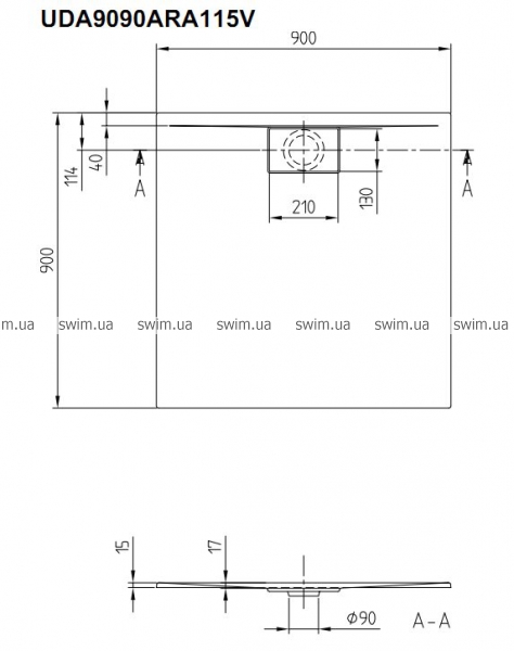 Поддон душевой Villeroy&Boch Architectura MetalRim UDA9090ARA115-01 90х90 см